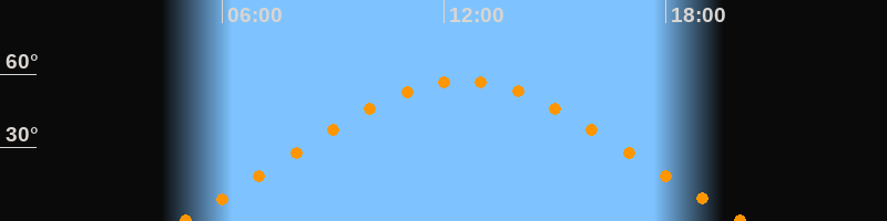| Höchster Stand (Kulmination) | 12:30 Uhr (h = 57,4°) |