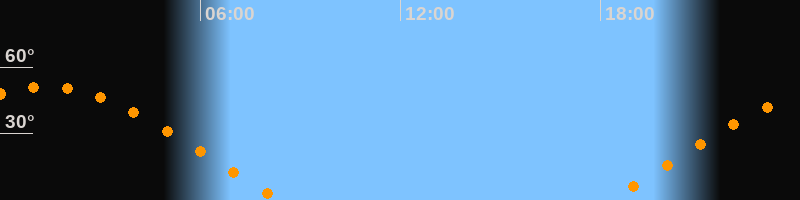 | Aufgang | 18:16 Uhr im Osten (αAz = 70,4°) |