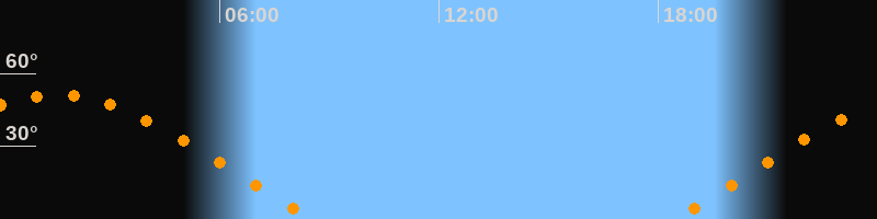 | Aufgang | 18:25 Uhr im Osten (αAz = 70,4°) |