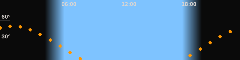 | Aufgang | 18:09 Uhr im Osten (αAz = 70,4°) |