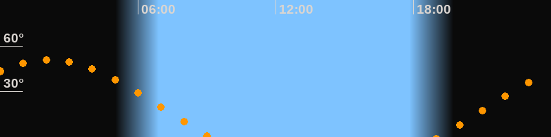 | Aufgang | 19:02 Uhr im Osten (αAz = 70,4°) |