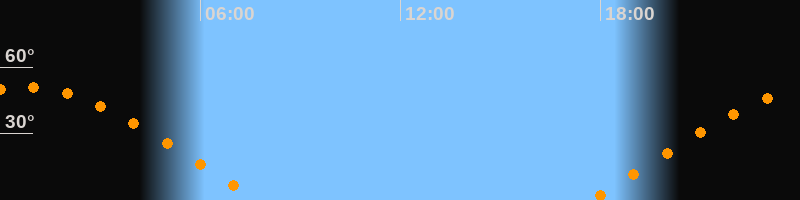 | Aufgang | 17:40 Uhr im Osten (αAz = 70,4°) |