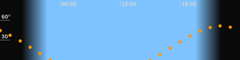 | Aufgang | 15:00 Uhr im Osten (αAz = 70,4°) |