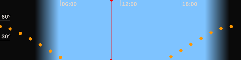 | Aufgang | 16:23 Uhr im Osten (αAz = 70,7°) |