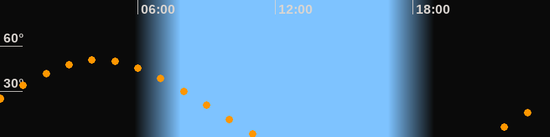 | Aufgang | 21:12 Uhr im Osten (αAz = 70,7°) |