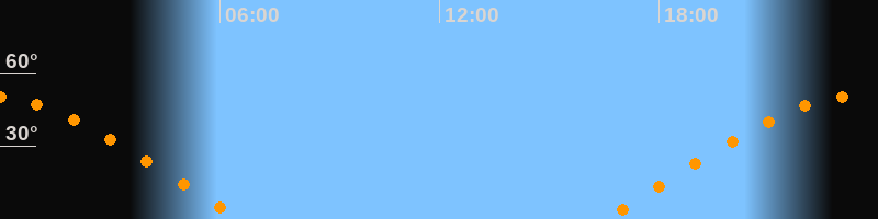 | Aufgang | 16:30 Uhr im Osten (αAz = 70,7°) |