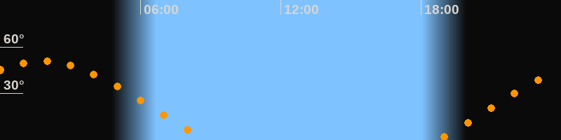 | Aufgang | 18:42 Uhr im Osten (αAz = 70,7°) |