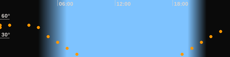 | Aufgang | 18:26 Uhr im Osten (αAz = 70,7°) |