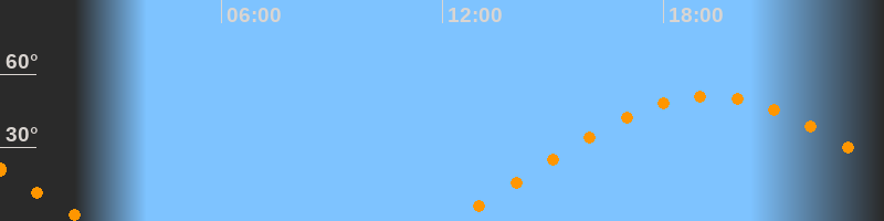 | Aufgang | 12:14 Uhr im Osten (αAz = 70,7°) |