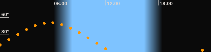 | Aufgang | 22:34 Uhr im Osten (αAz = 70,7°) |