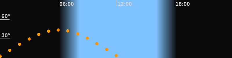 | Höchster Stand (Kulmination) | 06:03 Uhr (h = 43,7°) |
