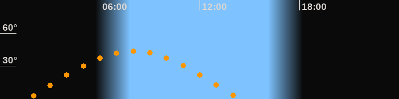 | Höchster Stand (Kulmination) | 08:00 Uhr (h = 43,7°) |