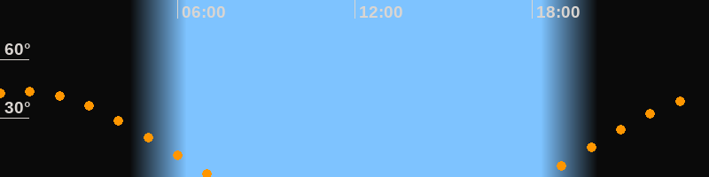 | Aufgang | 18:20 Uhr im Osten (αAz = 82,2°) |