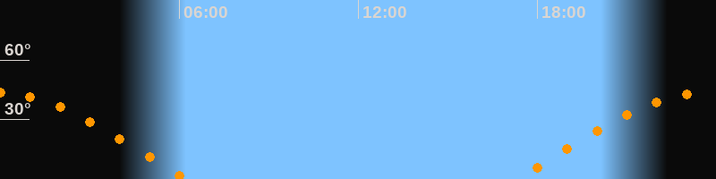 | Aufgang | 17:20 Uhr im Osten (αAz = 82,2°) |