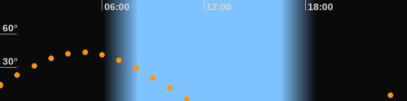 | Höchster Stand (Kulmination) | 04:51 Uhr (h = 43,7°) |