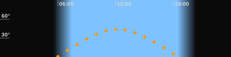 | Höchster Stand (Kulmination) | 12:14 Uhr (h = 43,7°) |
