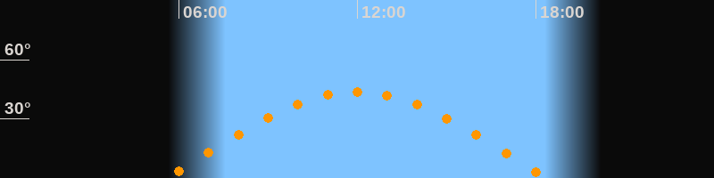 | Höchster Stand (Kulmination) | 11:59 Uhr (h = 43,7°) |