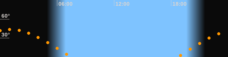 | Höchster Stand (Kulmination) | 01:02 Uhr (h = 43,7°) |