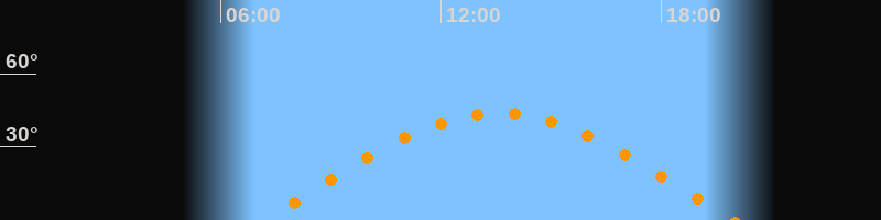 | Höchster Stand (Kulmination) | 13:34 Uhr (h = 43,7°) |