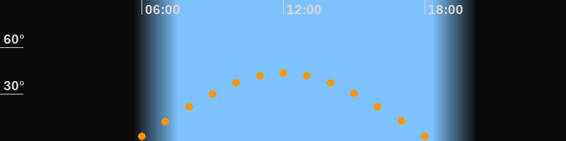 | Höchster Stand (Kulmination) | 12:00 Uhr (h = 43,7°) |