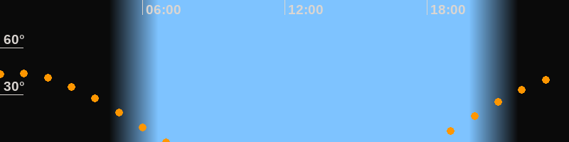 | Höchster Stand (Kulmination) | 00:36 Uhr (h = 43,7°) |
