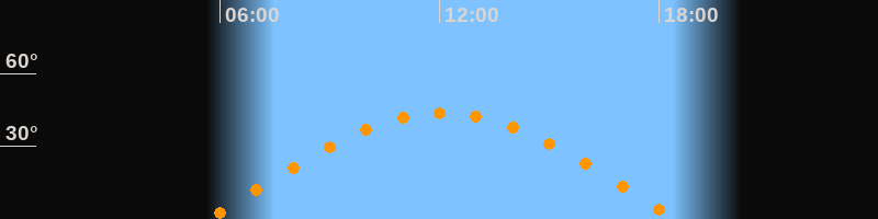 | Höchster Stand (Kulmination) | 12:05 Uhr (h = 43,7°) |