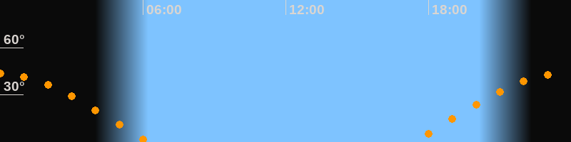 | Untergang | 06:14 Uhr im Westen (αAz = 277,8°) |