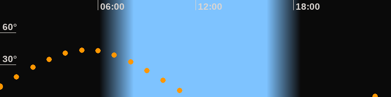 | Höchster Stand (Kulmination) | 05:20 Uhr (h = 43,7°) |