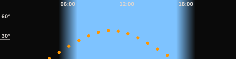 | Höchster Stand (Kulmination) | 11:15 Uhr (h = 43,7°) |