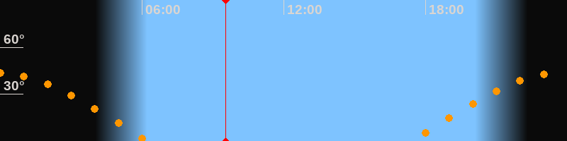 | Aufgang | 17:23 Uhr im Osten (αAz = 82,2°) |