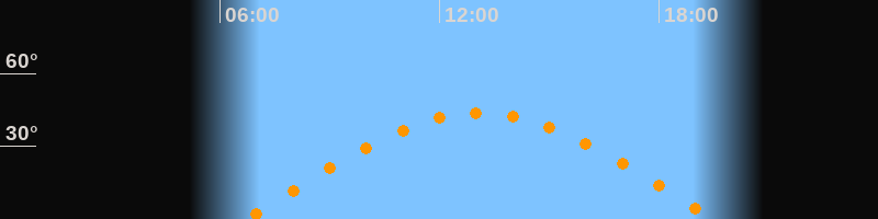 | Höchster Stand (Kulmination) | 13:06 Uhr (h = 43,7°) |