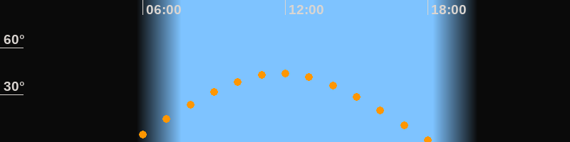 | Höchster Stand (Kulmination) | 11:48 Uhr (h = 43,7°) |