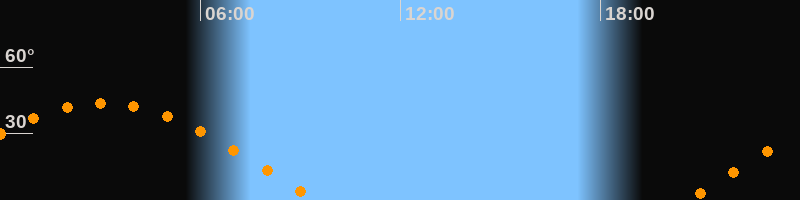 | Höchster Stand (Kulmination) | 03:04 Uhr (h = 43,7°) |