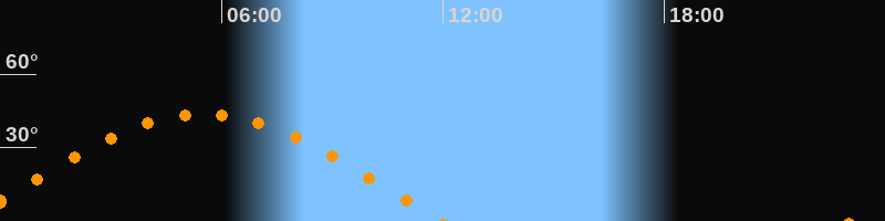 | Höchster Stand (Kulmination) | 05:31 Uhr (h = 43,7°) |