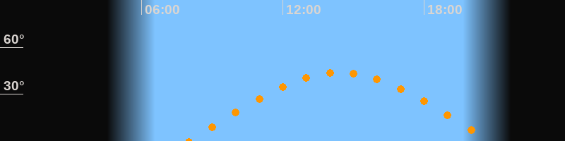 | Höchster Stand (Kulmination) | 14:24 Uhr (h = 43,7°) |