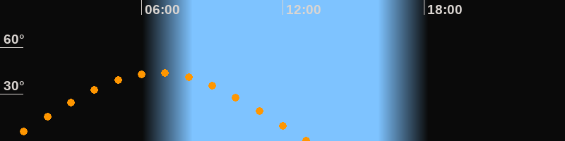 | Höchster Stand (Kulmination) | 06:41 Uhr (h = 43,7°) |