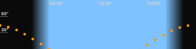| Untergang | 06:02 Uhr im Westen (αAz = 277,8°) |