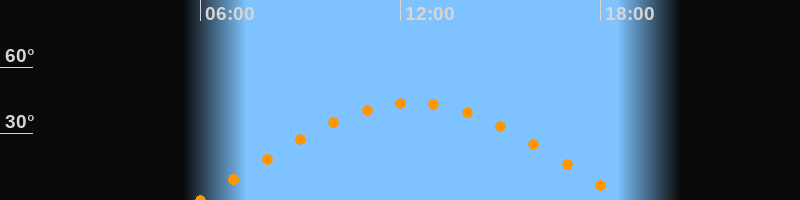| Höchster Stand (Kulmination) | 12:22 Uhr (h = 43,7°) |