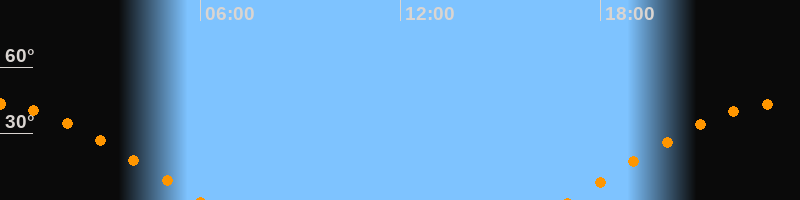| Aufgang | 17:06 Uhr im Osten (αAz = 82,2°) |