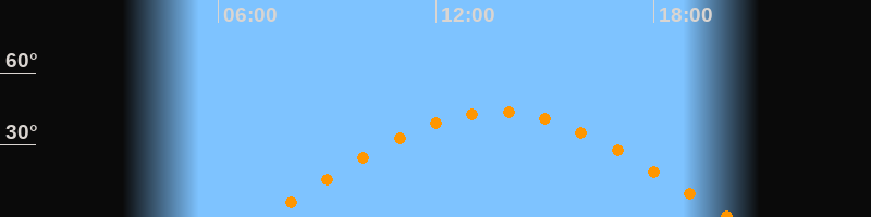 | Höchster Stand (Kulmination) | 13:40 Uhr (h = 43,7°) |