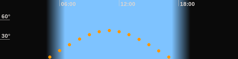 | Höchster Stand (Kulmination) | 10:59 Uhr (h = 43,7°) |