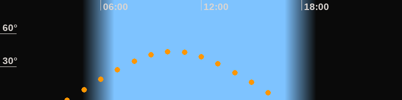 | Höchster Stand (Kulmination) | 10:20 Uhr (h = 43,7°) |
