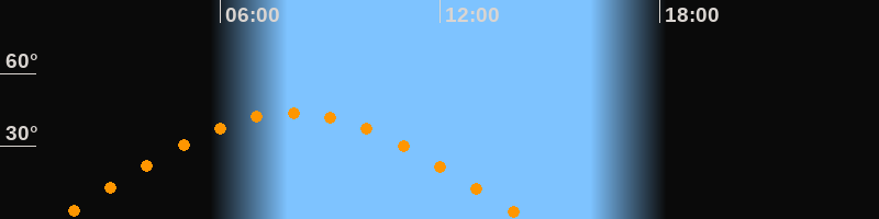 | Höchster Stand (Kulmination) | 07:58 Uhr (h = 43,7°) |