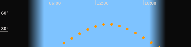 | Höchster Stand (Kulmination) | 13:33 Uhr (h = 43,7°) |
