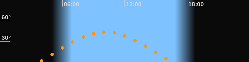 | Höchster Stand (Kulmination) | 10:09 Uhr (h = 43,7°) |