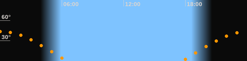 | Untergang | 06:32 Uhr im Westen (αAz = 277,8°) |