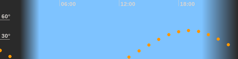 | Höchster Stand (Kulmination) | 19:01 Uhr (h = 43,7°) |