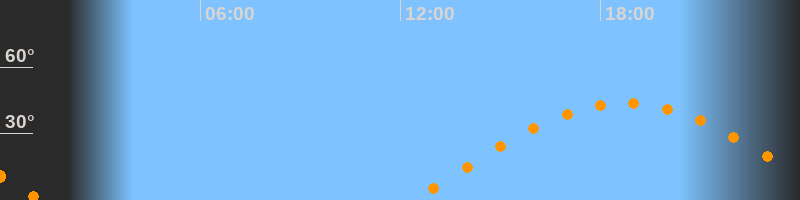| Höchster Stand (Kulmination) | 18:45 Uhr (h = 43,7°) |