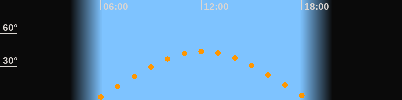 | Höchster Stand (Kulmination) | 12:04 Uhr (h = 43,7°) |