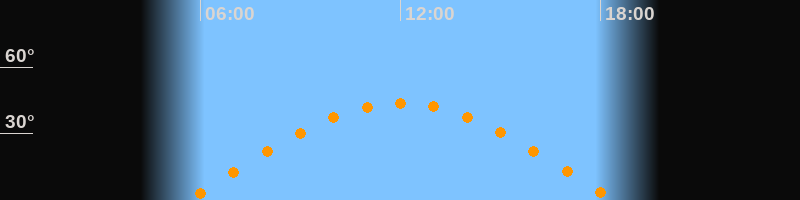 | Höchster Stand (Kulmination) | 12:00 Uhr (h = 43,7°) |